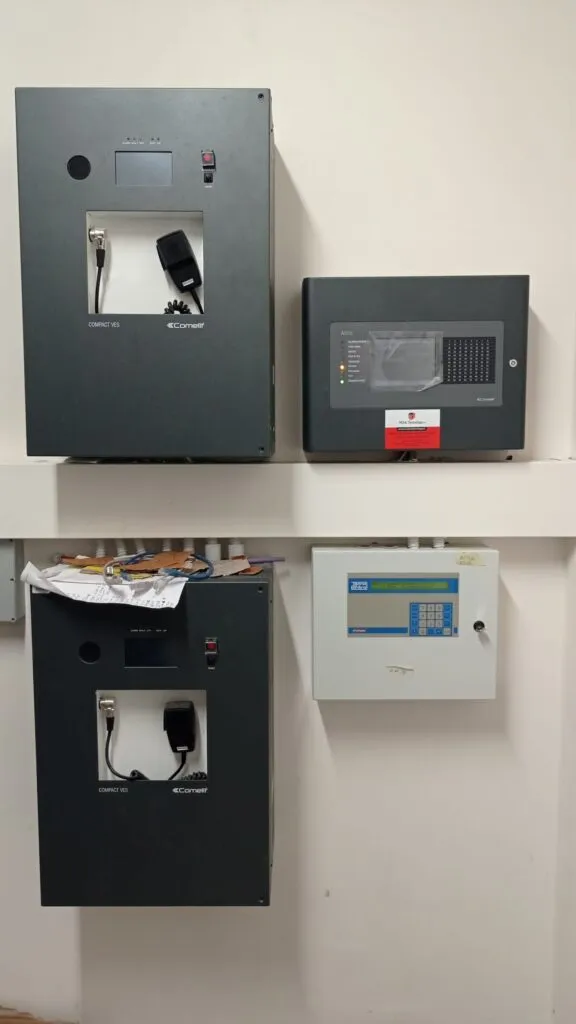 2 Atena control panels, 95 optical smoke detectors, 141 heat detectors, 41 gas detectors.