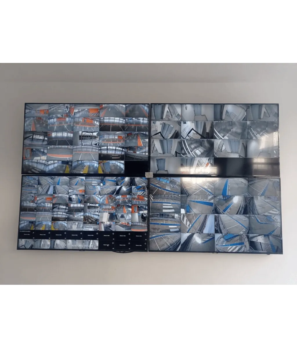 90 cameras with Deep Video Analysis monitored via a video wall.